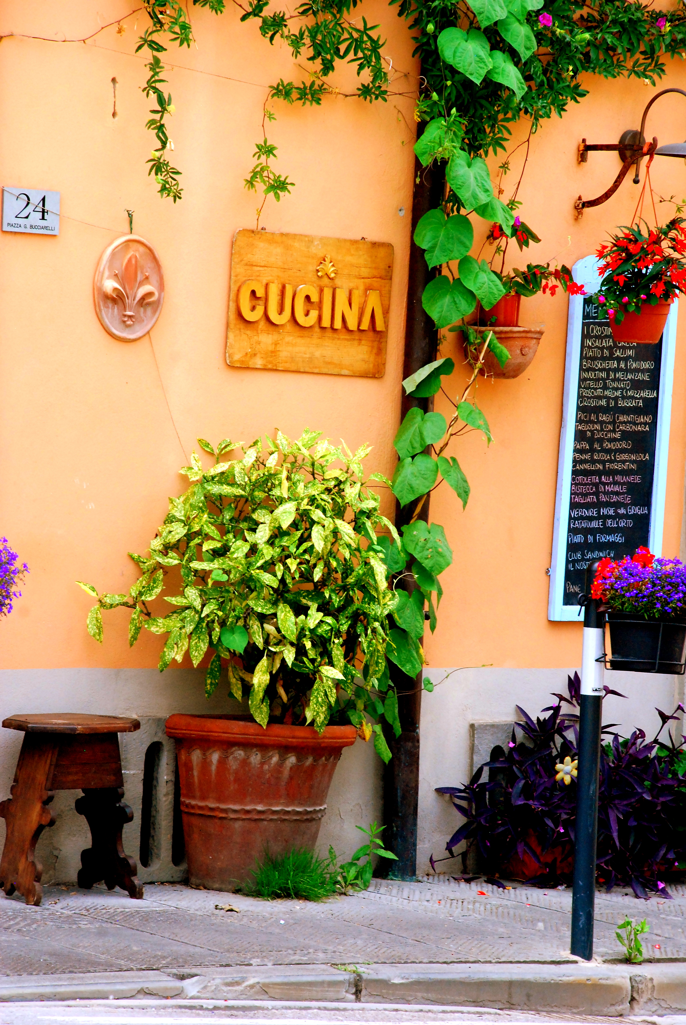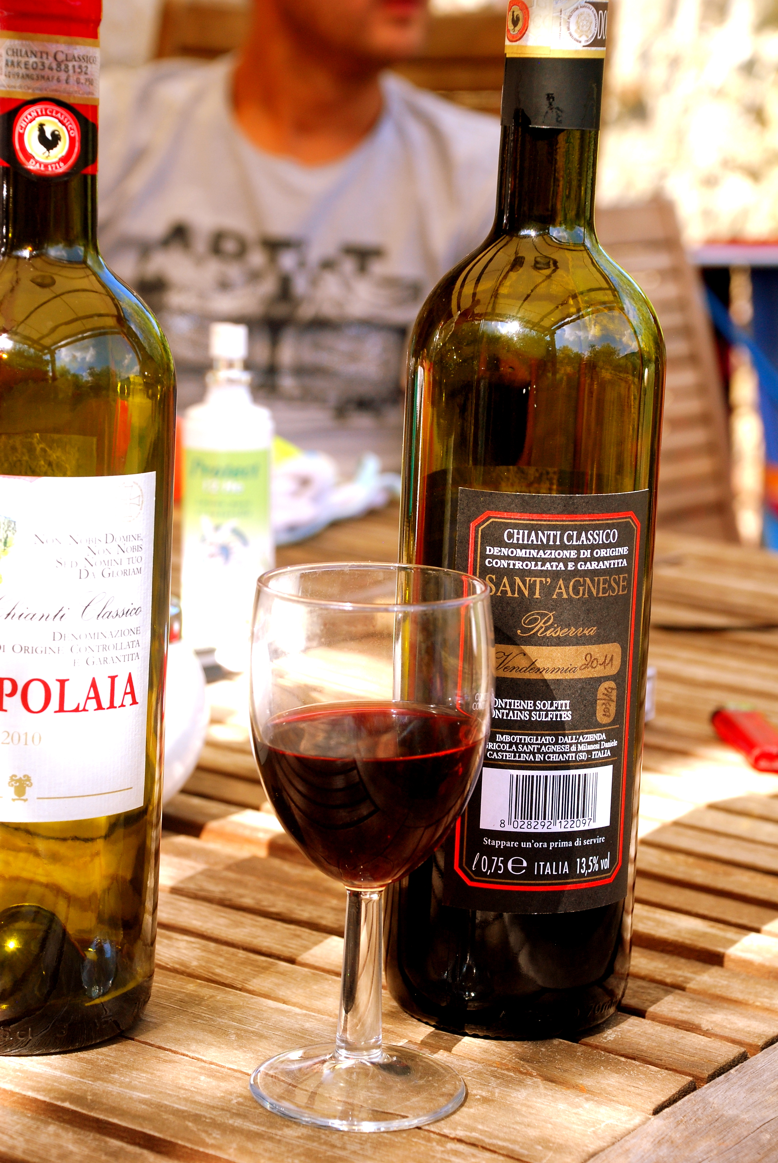 Qui dit chianti, dit vin évidemment … Le rouge est léger, fruité et n’a pas ce velours en bouche qu’ont de nombreux vins français, du coup … pour la première fois de ma vie j’ai aimé un vin rouge !