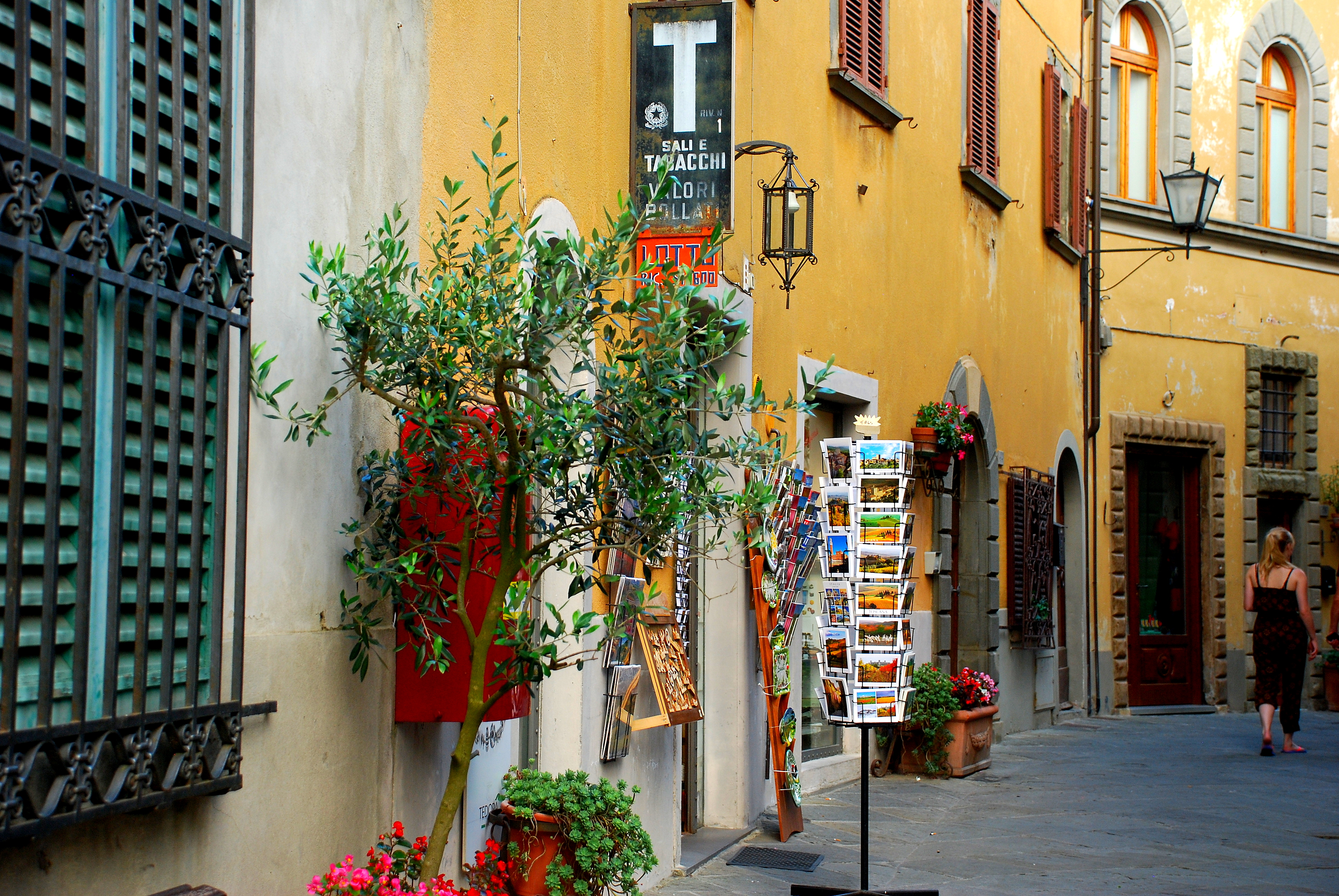 Nous nous baladons dans les jolies ruelles fleuries du petit centre historique, un passage couvert nous offre une merveilleuse vue sur les vignes et les oliviers en contrebas.