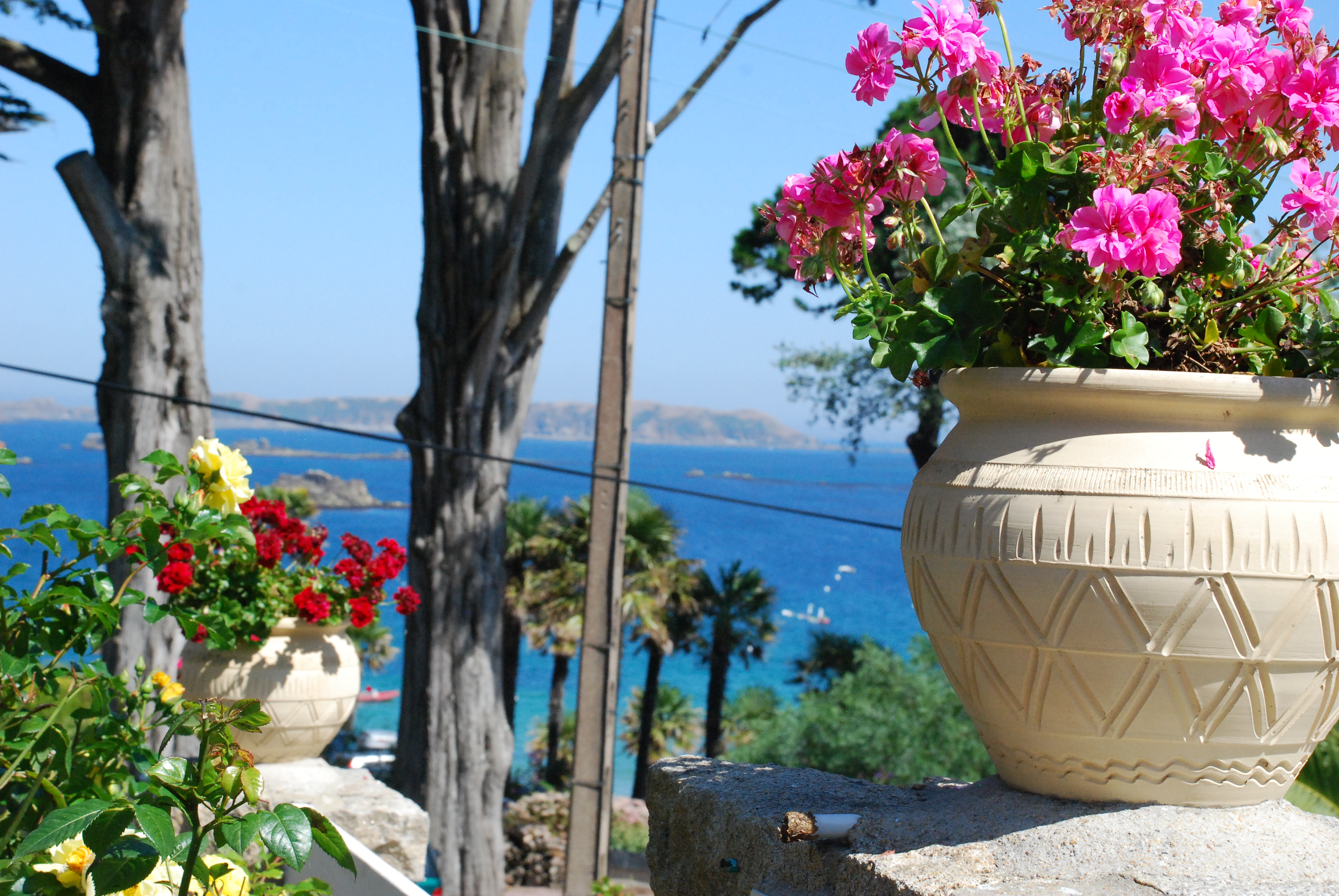 A présent cap sur la magnifique côte de Granit Rose, ses hortensias, ses jolies baies, ses rochers et ses vieilles pierres sans oublier le soleil qui en 8 jours ne nous a jamais quittés !!!