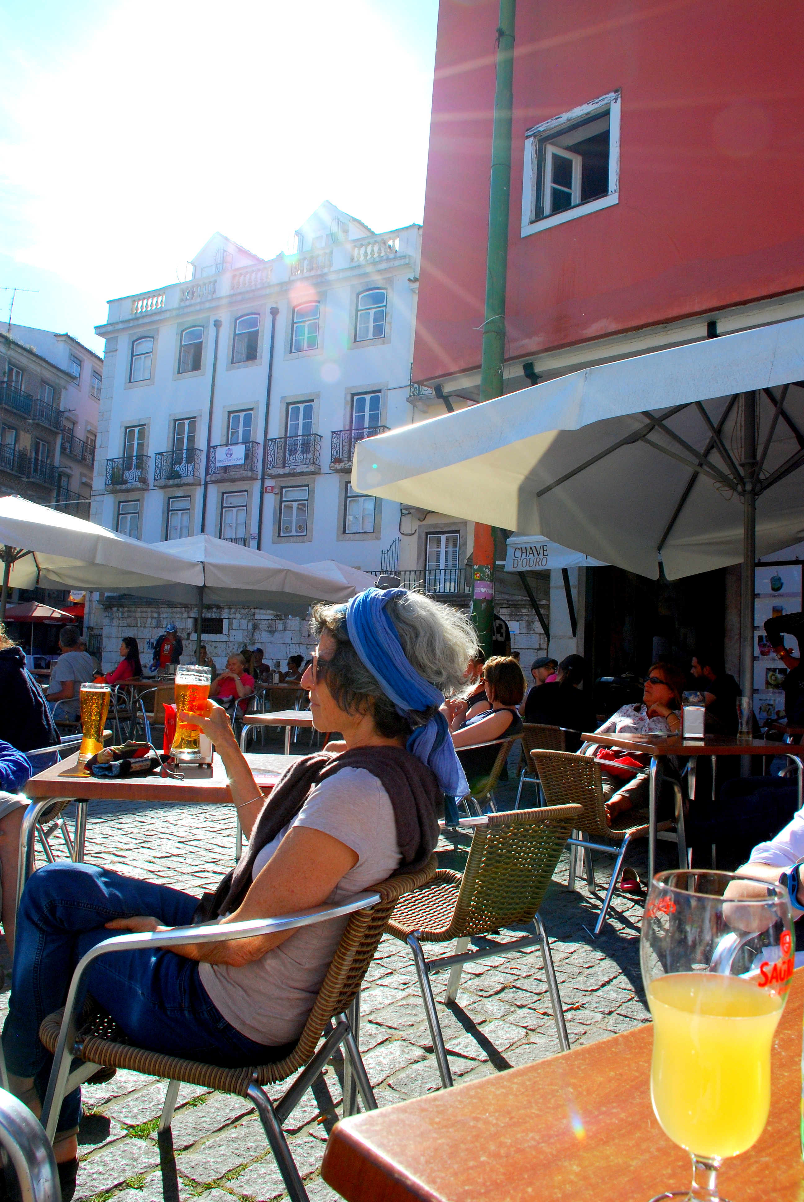 Et nous revoilà sur la place du Musée du Fado à quelques pas de notre appartement … Nous décidons de nous poser en terrasse, un apéritif à la main nous écoutons un groupe multi-culturel, des sons d’Afrique, d’Europe, du Nord et du Sud … c’est hyper agréable … Tellement que tous les autres jours nous garderons ce rituel, une caïpirihna à la main pour savourer le bonheur d’être ensemble dans cette ville si attachante …